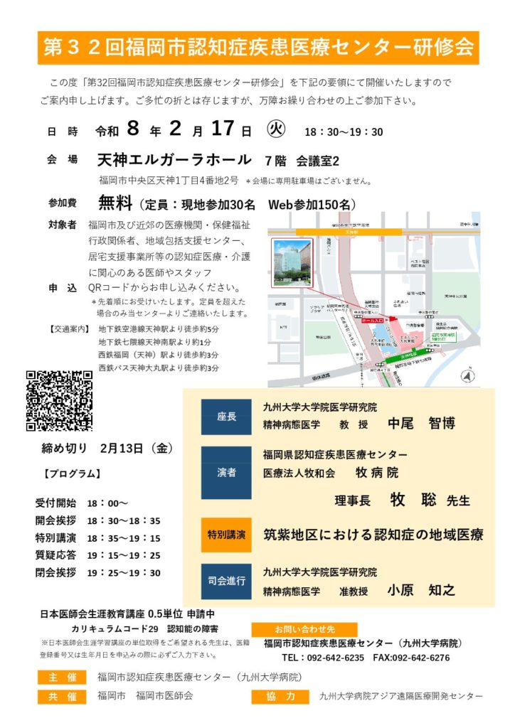 『第32回福岡市認知症疾患医療センター研修会』のお知らせ